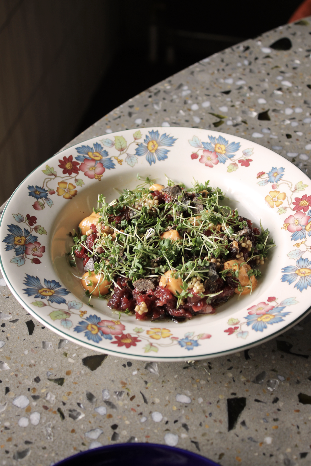 Tatar af okse med syltede sennepskorn,